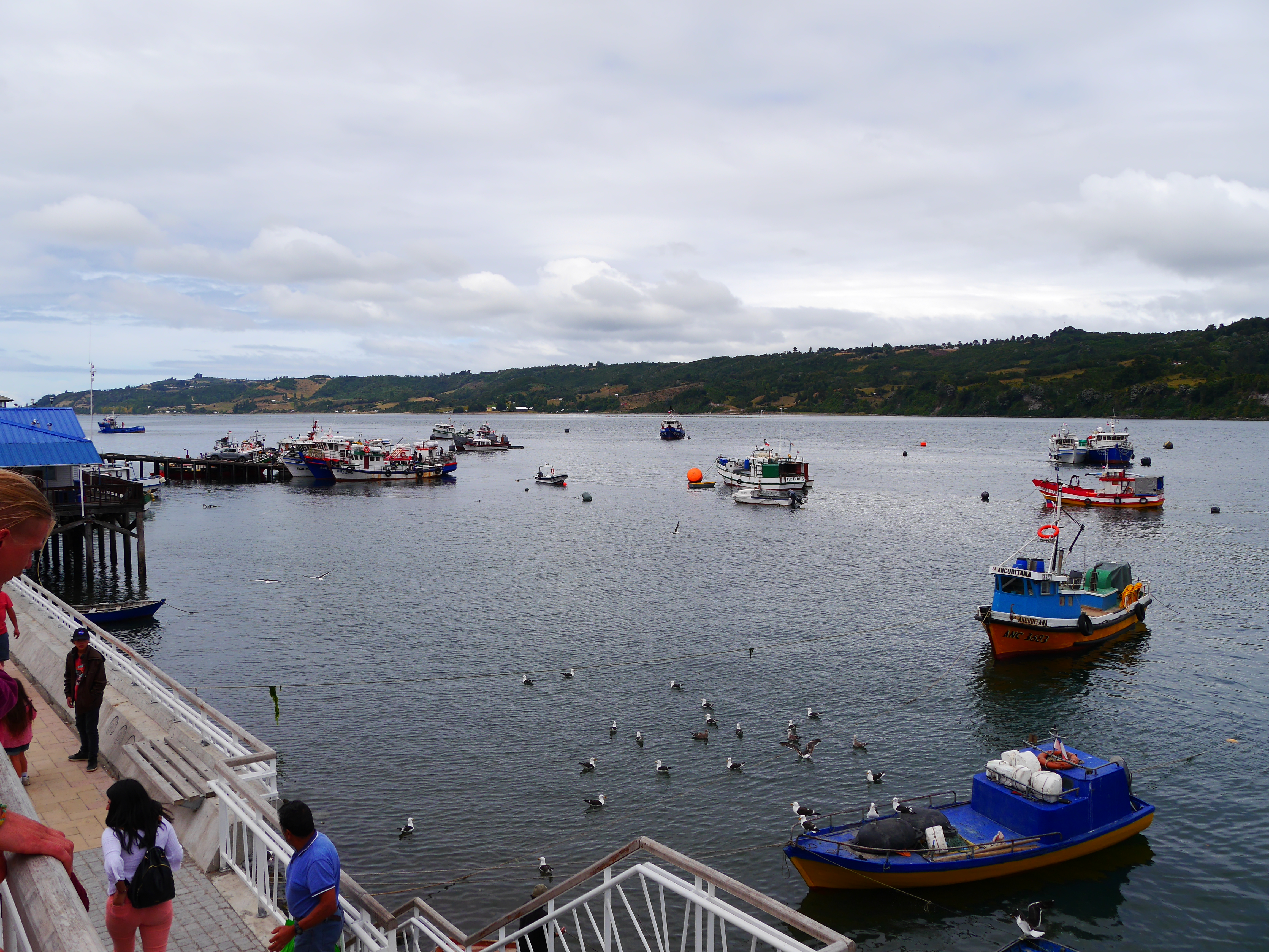 La traversée est presque un prolongement de la route : ça dure 5mn et il y a un bac toutes les 10mn jusqu’à tard le soir. L’île de Quinchao a beau être petite, elle est quand même relativement peuplée avec pas mal de petits villages et la ville d’Achao, qui doit bien compter 10 ou 20000 habitants.