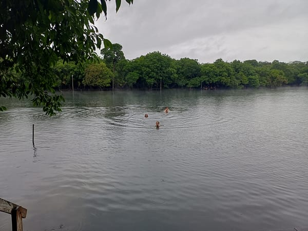 On arrive à Aguas Calientes sous la pluie, c’est un petit village perdu sur la route de Santa Cruz, dans le Pantanal bolivien qui est bien plus vert et humide que du côté brésilien. Francine patauge dans des chemins boueux au point que l’on craint de s’enliser. On s’arrête dans une épicerie insalubre aux gérants antipathiques où j’achète le strict nécessaire. On finit par arriver au camping, désert, mignon sous les arbres et bien entretenu, mais inévitablement détrempé… On s’arrête enfin et ça tombe bien parce que je n’en peux plus nerveusement, trop de trucs chiants et de cons à gérer depuis 2 jours… d’ailleurs je dis clairement à tout le monde que j’ai besoin de m’isoler pour souffler un peu, et qu’il pourrait être dangereux d’entrer en contact avec moi à ce moment-là. Mes chéries sont sympas avec moi et me laissent cuver mon envie de détruire le monde dans mon coin. J’en profite pour faire une page de pub pour la méditation pleine conscience car sans elle j’aurais probablement beaucoup moins bien vécu tout ça et été bien plus odieux, provoquant sans nul doute une sur-crise intra familiale comme je sais bien le faire dans ces moments-là…