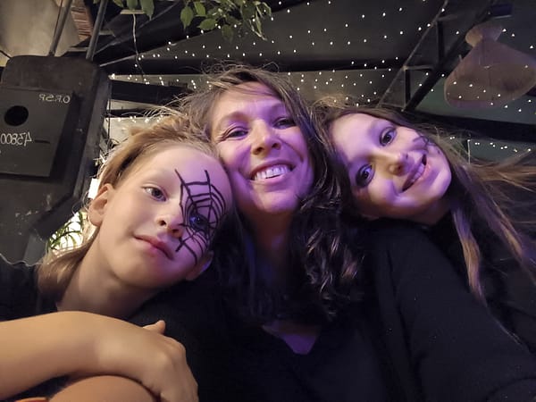 Violaine nous sert un délicieux petit déjeuner maison, pendant qu’on fait connaissance avec cette attachante famille. Les filles accrochent direct avec Esteban, 10 ans, et son chien Nour, et passent 3 jours à s’éclater dehors : taille de bout de bois avec leurs opinels d’éclaireuses, cache cache, discussions sur le trampoline… on ne les a vues que pour les repas.