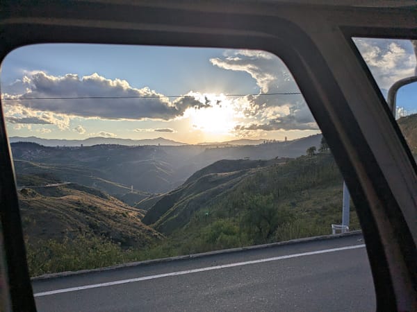 On lève le camp pour Sucre avec une journée de route de montagne, passant brutalement d’un paysage verdoyant à un autre beaucoup plus aride, où la roche est très présente, avec de nombreuses teintes différentes. On en prend plein les yeux jusqu’à notre arrivée aux abords de Sucre où on se met à monter brutalement sur une petite route assez congestionnée, jusqu’ à atteindre des hauteurs assez vertigineuses où on finit par apercevoir la belle Sucre !
