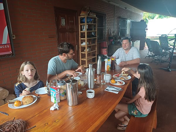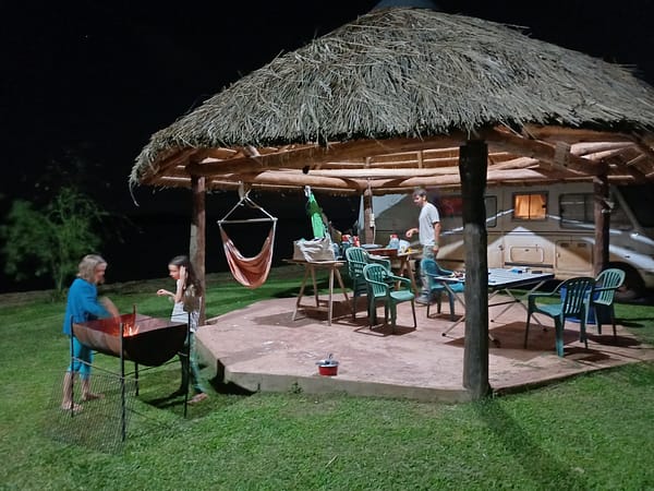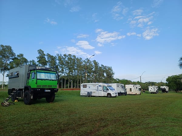 Le lendemain matin, après la séance d’école et un petit plongeon dans la piscine, nous prenons la route pour le Paraguay. On décide de prendre le bac entre l’Argentine et le Paraguay, pour éviter d’avoir à repasser par le Brésil. Manque de bol, arrivés au bac tout est fermé. On apprend que la journée a été déclarée fériée au Paraguay, parce que le pays s’est qualifié à une compétition de football. Tiens donc, mais qu’est-ce que c’est que ce pays ! On apprendra plus tard qu’au Paraguay il y a peu de vacances données au travailleurs, mais une quinzaine de jours fériés par an, dont 3 à placer dans l’année en fonction des événements.