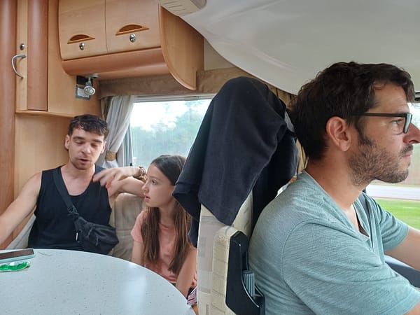 Ensuite nous allons nous poser dans le camping ultime à Hohenau. Deux grandes piscines avec toboggans, panier de basket, tables de ping pong, plein de voyageurs en camion, des prés avec pleins d’animaux, une petite ferme avec nandus, tapirs, dindons, chèvres. Ils y a même des perroquets qui te sifflent et disent « holaaaaa » quand tu passes devant leur volière. On y croise notamment une famille d’allemands en voyage avec leurs deux garçons depuis 5 ans. On passe de bon moments avec eux, on accroche bien. Jorgen qui est un bricoleur de haut vol (il a carrément monté la cellule de son camion), il rigole bien avec Étienne qui apprend petit à petit à rafistoler Francine. Il a notamment beaucoup ri le soir où on s’est garés sous un arbre fruitier et qu’on a déménagé en pleine nuit car on n’en pouvait plus du clong clong des fruits qui tombaient sur le toit à cause de la pluie.