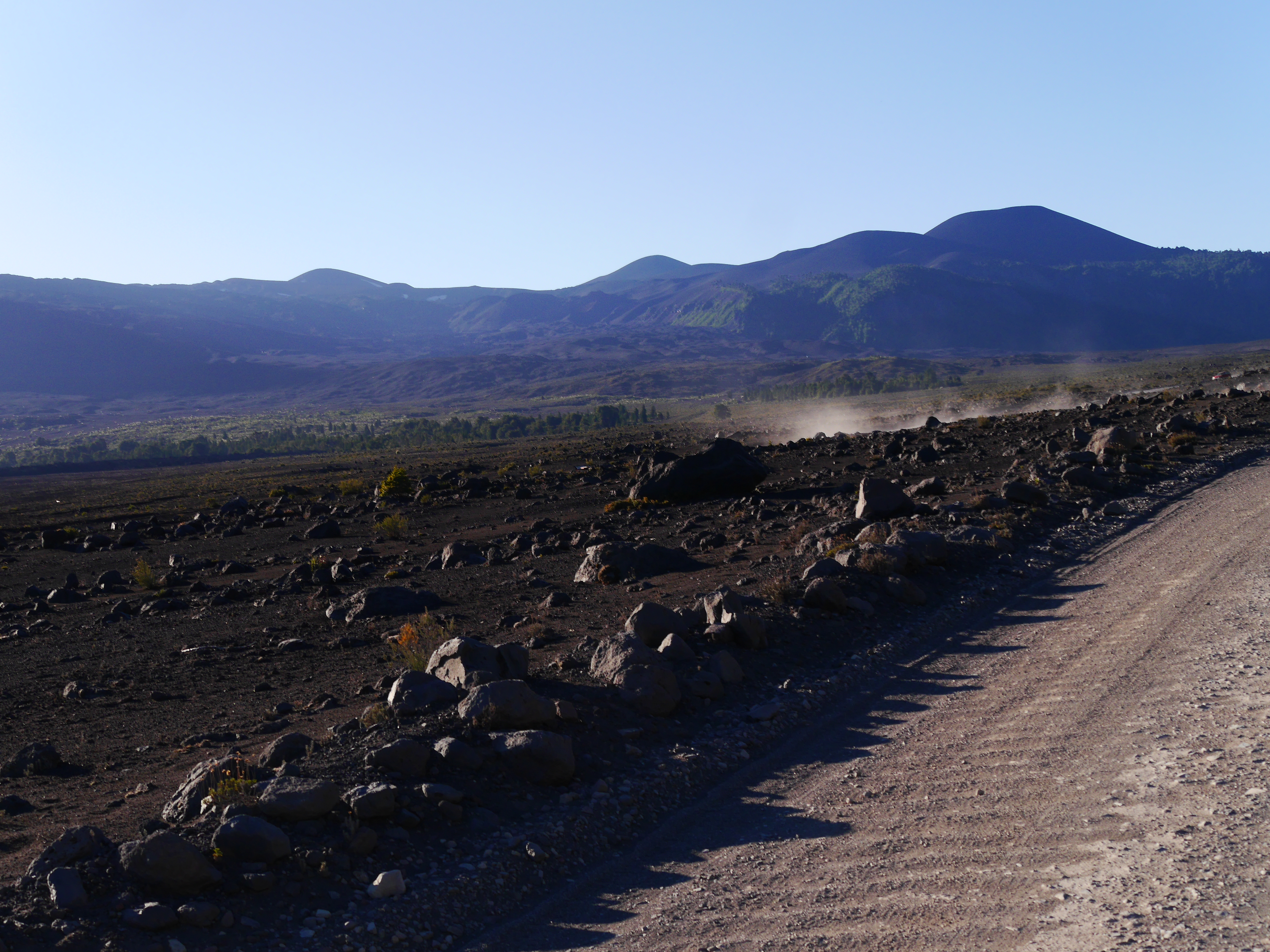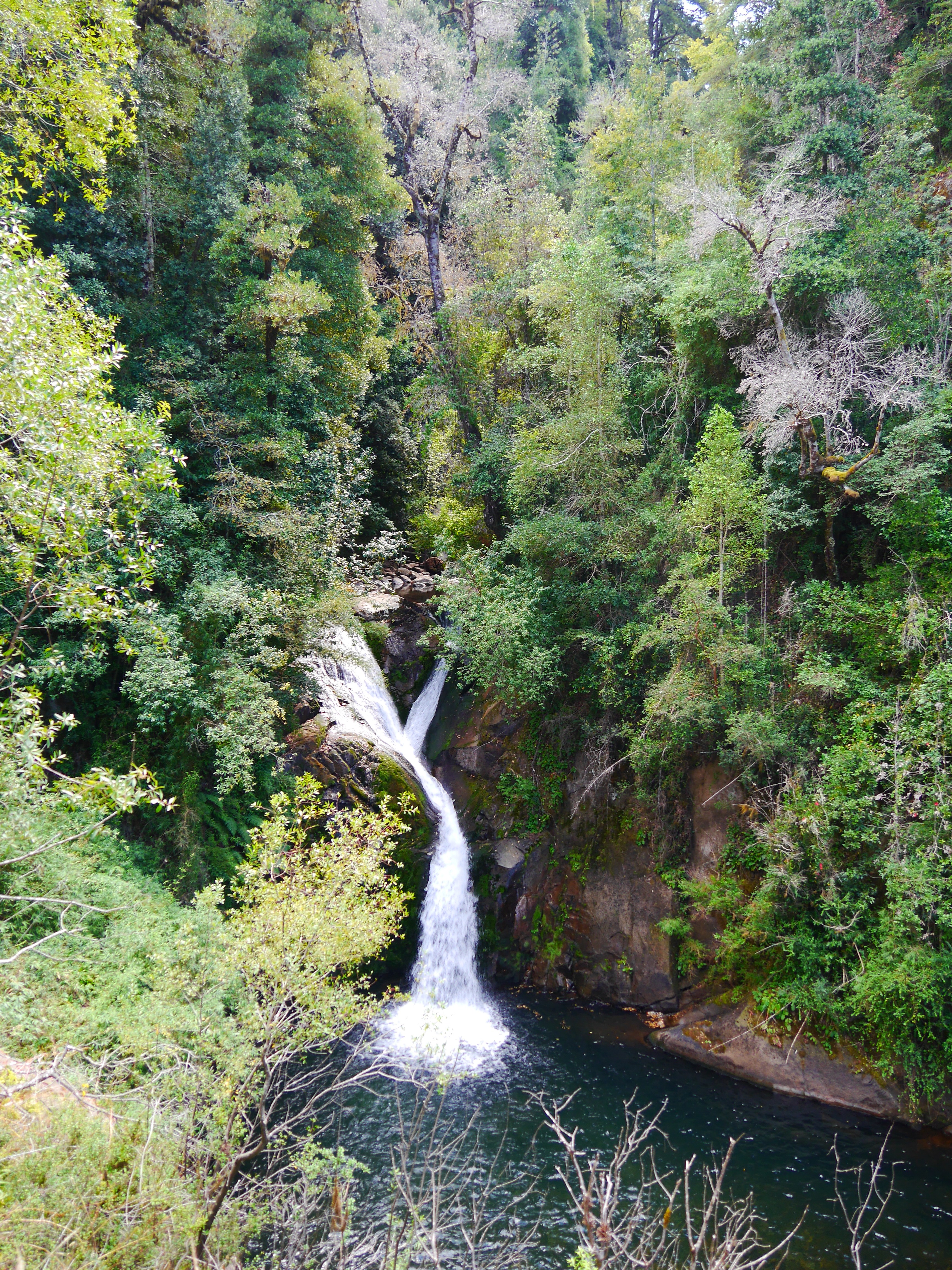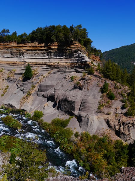 Le lendemain nous partons pour Melipeuco, où nous goûtons le délicieux pastel de choclo, ou gâteau de maïs, spécialité du coin. On se régale et on regrette de ne pas avoir testé plus tôt ! Les 2 jours suivants nous resterons dans le parque Conguillo. La vue est encore une fois époustouflante. Nous traversons canyons et champs de lave, le tout agrémenté de lacs et de rivières. Dans le même parc nous faisons la balade des araucarias, arbres les plus vieux du Chili. Nous ramassons des graines que Charlotte se fera un plaisir de dévorer !