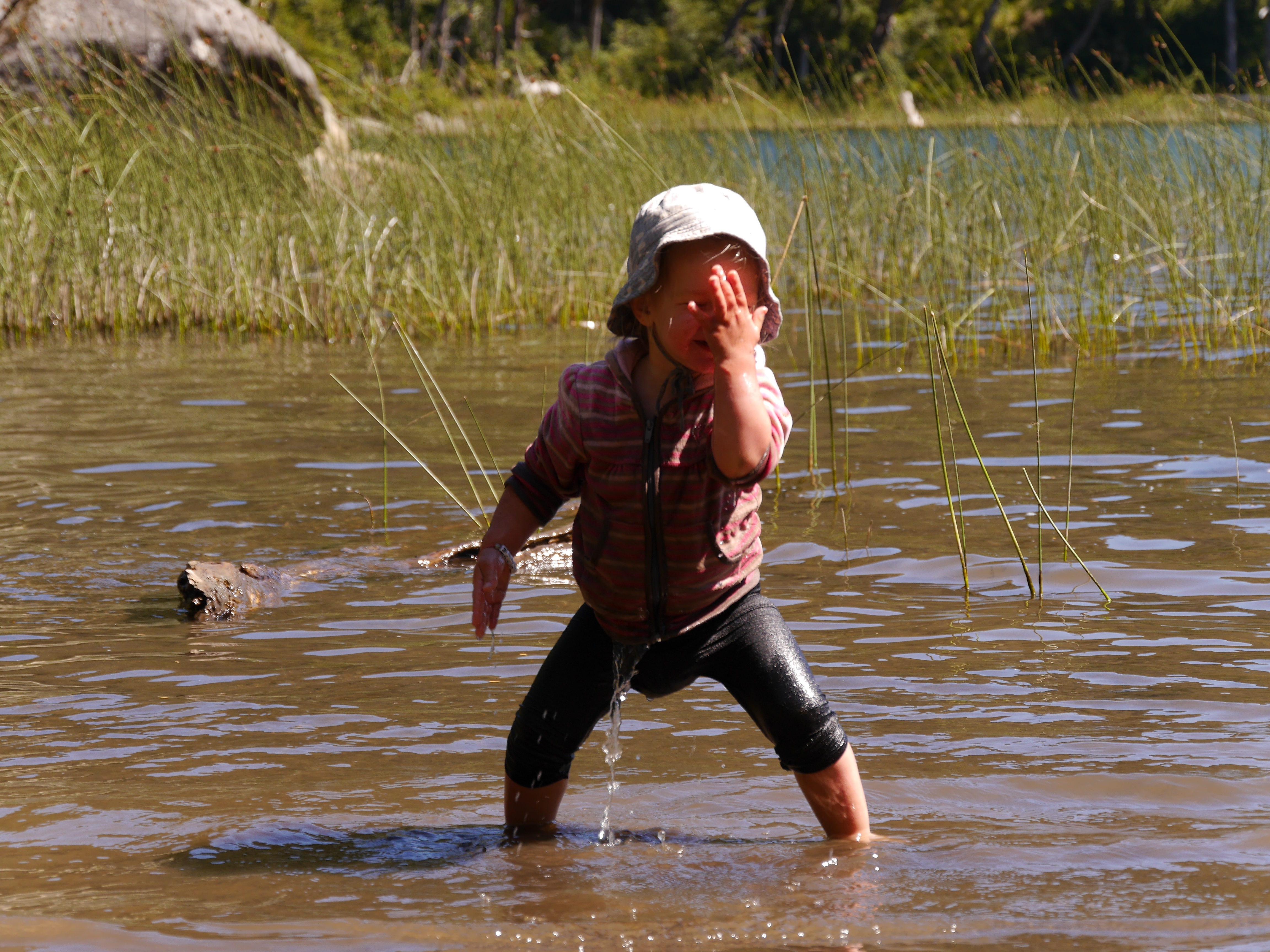 Le 12 mars on se sent chaud, même pas peur, on part faire une rando de 12km avec les filles sur le dos ! Direction le parque Huerquehue, 500 mètres de dénivelé positif. On chante tout du long pour occuper les filles qui s’ennuient un peu dans leur sac à dos, on fait des pauses. Ça grimpe un peu mais c’est magnifique. Le midi on fait une pause au bord d’un lac. Les filles s’éclatent comme des petites folles à se rouler dans l’eau, grand moment de bonheur ! Puis la fatigue se faisant sentir, nous tentons de mettre les filles à la sieste dans la petite tente de voyage. On y croyait dur comme fer, « mais si ça va marcher, elles sont crevées », le refrain classique. Belle illusion. Moralité nous avons bien gâché le moment de repos du pauvre couple qui s’est retrouvé à côté de nous ce midi-là. Cadre somptueux et voisins bruyants, pas de bol.