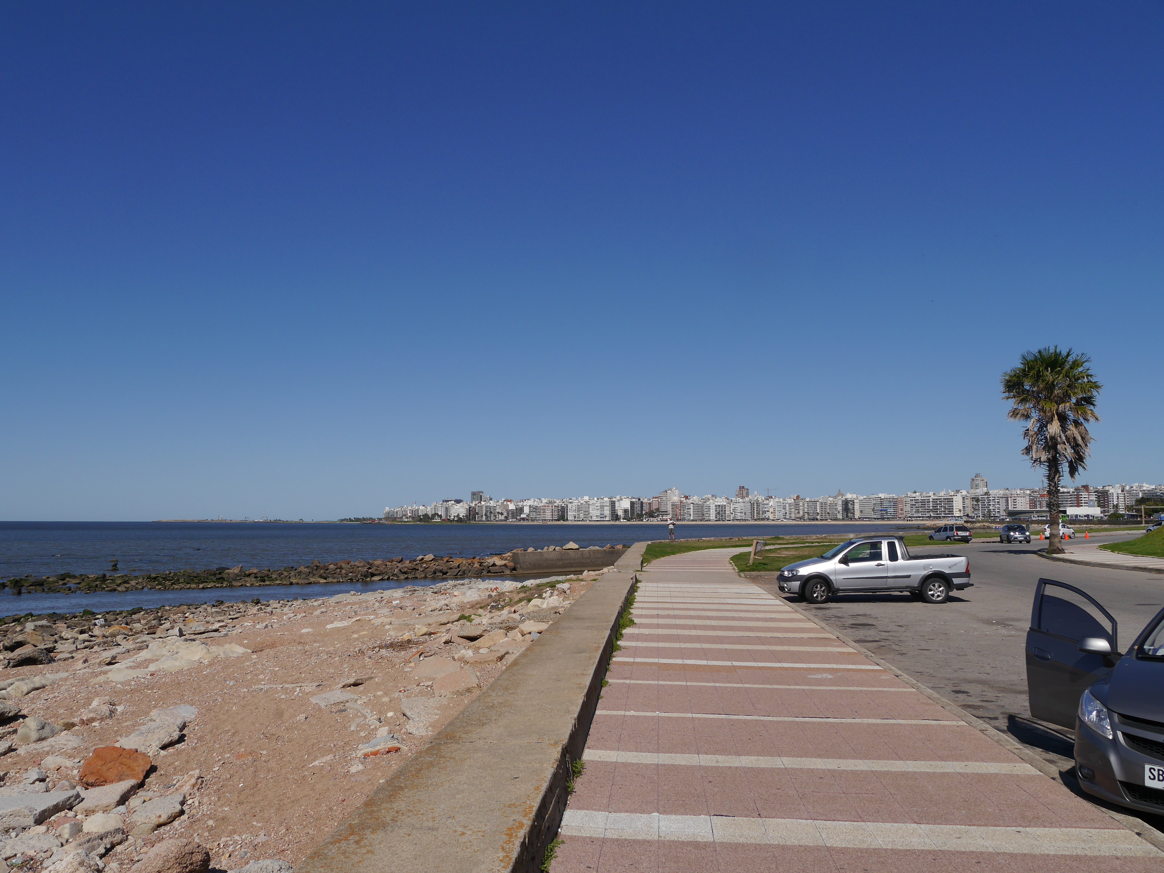 Montevideo se situe à l’embouchure dans l’Atlantique du Rio Plata, grand fleuve qui sépare l’Uruguay de l’Argentine, avec Buenos Aires de l’autre côté, un peu plus en amont. La ville est bordée d’un grand port avec ses innombrables grues et containers, puis de plusieurs jolies plages de sable clair, très fréquentées. Nous avons passé plusieurs nuits entre deux d’entre elles, sur une avancée avec des places de parking face à la mer. Chaque soir de nombreux locaux viennent soit y pêcher, soit contempler le large depuis leur voiture, la plupart du temps en sirotant un maté, la boisson officielle ici et en Argentine. C’est une infusion faite de multiples plantes, et qui se boit de façon très protocolisée dans une tasse où baignent les herbes, d’où sort une paille rigide et filtrante, et qui est régulièrement rechargée en eau chaude grâce à un thermos, l’ensemble semblant être le kit minimal indispensable que tout uruguayen qui se respecte emporte partout avec lui. On est impatients de goûter ça. En attendant, on boit du rhum !