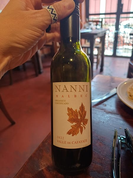 On va ensuite dans un restaurant typique de Salta, où on goûte humitas, tamales, carbonada, empanadas. Et du vin de la région de Cafayate de la bodega Nanni !