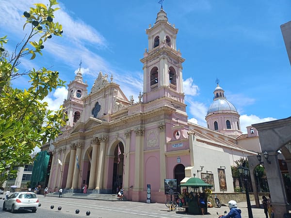 Avec Étienne et les filles on décide de partir en ville visiter un peu, manger un bout et faire quelques courses. Franck propose de nous déposer dans Salta, en faisant quelques détours pour nous montrer les environs. Nous voilà embarqués dans sa jeep avec les chiens, les filles sur la banquette arrière puis carrément dans le coffre. Elles rigolent bien. La région est très belle : vallonnée, verdoyante. On comprend pourquoi beaucoup d’étrangers finissent par se poser ici.