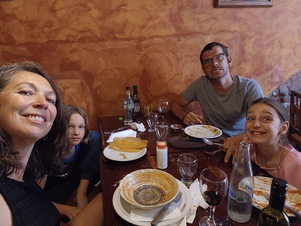 Le lendemain matin le berger allemand est toujours là. Il ne veut pas quitter la maison, passe toujours le portail pour revenir vers nous. Il est d’une gentillesse et d’un calme incroyable, on tombe tous sous le charme. Les filles décident de l’appeler Chamallow et passent toute la journée avec lui à lui faire des papouilles. Élu à l’unanimité meilleur chien du voyage !