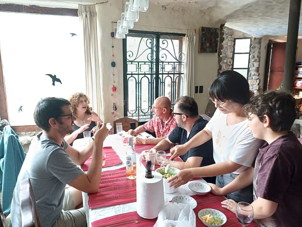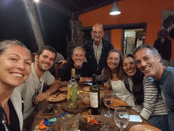 Le midi nous faisons un gros réveillon avec les voyageurs et les amis de Franck. Nous accrochons beaucoup avec une famille argentine : Celeste et ses trois filles Maribel, Mariela et Sonia. Puis nous discutons longuement avec une famille d’américains : Noah, Leigh et leur fils Charly. Ils vivent en Argentine depuis une dizaine d’année, il est chercheur botaniste et elle est écrivaine. On réussit à parler assez ouvertement des médias et d’Israël, c’était très intéressant.