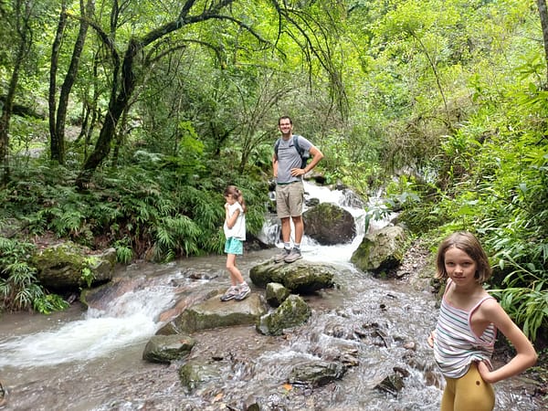 Pendant ce temps avec les filles on profite de la piscine et du jardin de Franck, et on part visiter la Quebrada de San Lorenzo. C’est un endroit perdu dans la forêt avec des chemins de randonnée. Ça fait un bien fou de se retrouver dans la verdure !