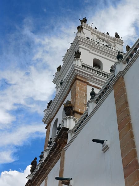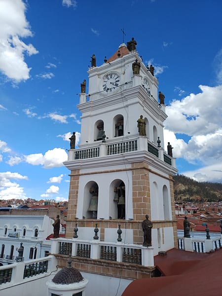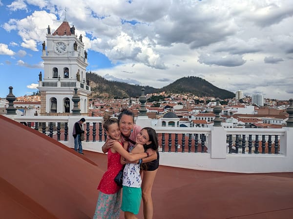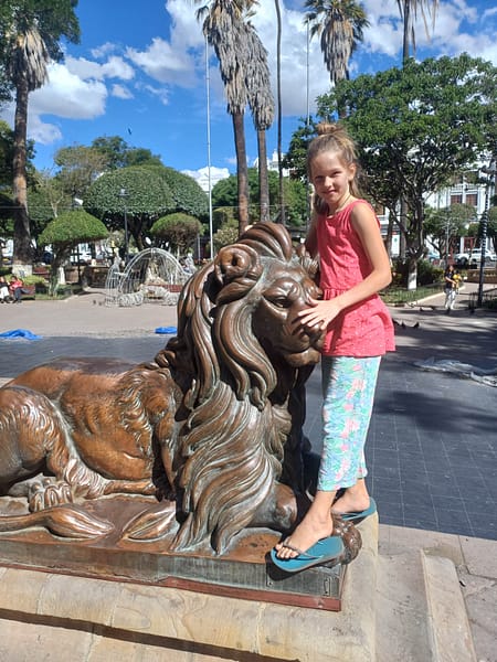 On visitera aussi le cimetière magnifique de Sucre, différents musées, et la cathédrale. Elle est splendide et nous pouvons même nous balader sur ses toits ! Étienne et Oli ont le vertige et apprécient moins, mais Lolotte et moi adorons.