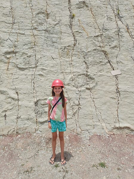 Nous sommes aussi allés visiter un site archéologique où on peut voir des empreintes de dinosaures. C’est assez impressionnant de voir ces marques de pas à la verticale sur la roche. On ne peut que mieux imaginer les effets de la tectonique des plaques et ça nous permet d’expliquer pas mal de choses aux filles.