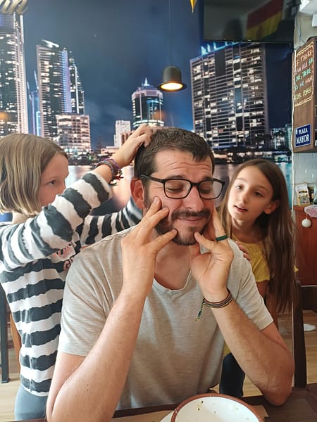 Nous avons notamment rencontré une famille de toulousains en voyage en sac à dos. Nous étions tous les quatre au restaurant (comme souvent !) lorsqu’on entend derrière nous « Arrête de te gratter les fesses ». Lolotte les regarde et s’écrit « Oh des francais ! ». Nous éclatons tous de rire, puis nous partons sur une longue conversation de baroudeurs. Ils voyagent pendant un an comme nous, avec Clémentine qui a l’âge d’Olivia et son petit frère Paul. Les filles deviennent bonnes copines et s’écrivent encore régulièrement.