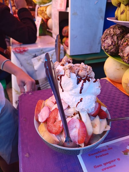 On peut tout faire à pied, on se précipite pour visiter le centre ville et surtout le marché central. Ce marché est immense, plein de couleurs et de stands en tout genre. Dès le premier jour on teste le comedor familiar, une énorme cantine où une dizaine de femmes préparent des plats typiques de la Bolivie comme la sopa de mani (bouillon légumes, poulet et cacahuètes) ou le pollo mondango (plat traditionnel à base de poulet, sauce tomates, maïs et piment).