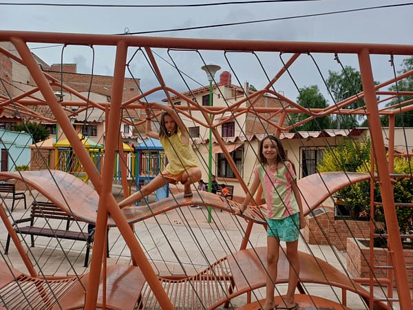On termine au parc Bolivar, le paradis des enfants avec toboggans géants. On y retournera souvent par la suite pour se poser sur des bancs à l’ombre pendant que les filles s’amusent. On y croisera quelques familles françaises avec enfants bien sympathiques. Les filles sont ravies de jouer avec des enfants français et nous d’échanger sur nos voyages respectifs.