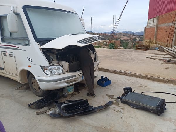 Le 21 novembre le filtre à gasoil est reçu et installé. Mais le voyant rouge est toujours présent… Les impuretés se sont sûrement déplacées dans le circuit, il va falloir nettoyer un peu plus. Le 22 les mécanos ont démonté et remonté le moteur pour nettoyer la pompe à gasoil et les injecteurs, mais Francine ne redémarre plus… Il va falloir commander un nouveau filtre à gasoil, et un câble pour pouvoir passer la valise car ils n’ont pas le bon en Bolivie. Heureusement Luís est au Chili et se propose de nous envoyer tout ça.