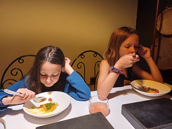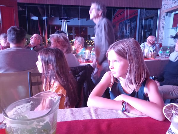 Le soir nous allons au restaurant avec la famille de toulousains avec qui nous avions bien accroché. Les filles deviennent meilleures amies avec Clémentine, et nous passons tous une excellente soirée.