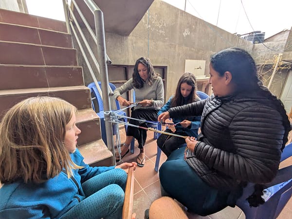 Le samedi 8 novembre nous faisons une matinée avec Brigida, femme quechua qui nous reçoit chez elle pour nous apprendre à tisser des bracelets boliviens. Ce n’est pas facile et on galère un peu mais repart tous avec notre beau bracelet tissé par nos soins, on est ravis. J’y retournerai même plus tard deux demies journées pour perfectionner la pratique, et je me suis procuré tout le matériel pour essayer de renouveler l’expérience.