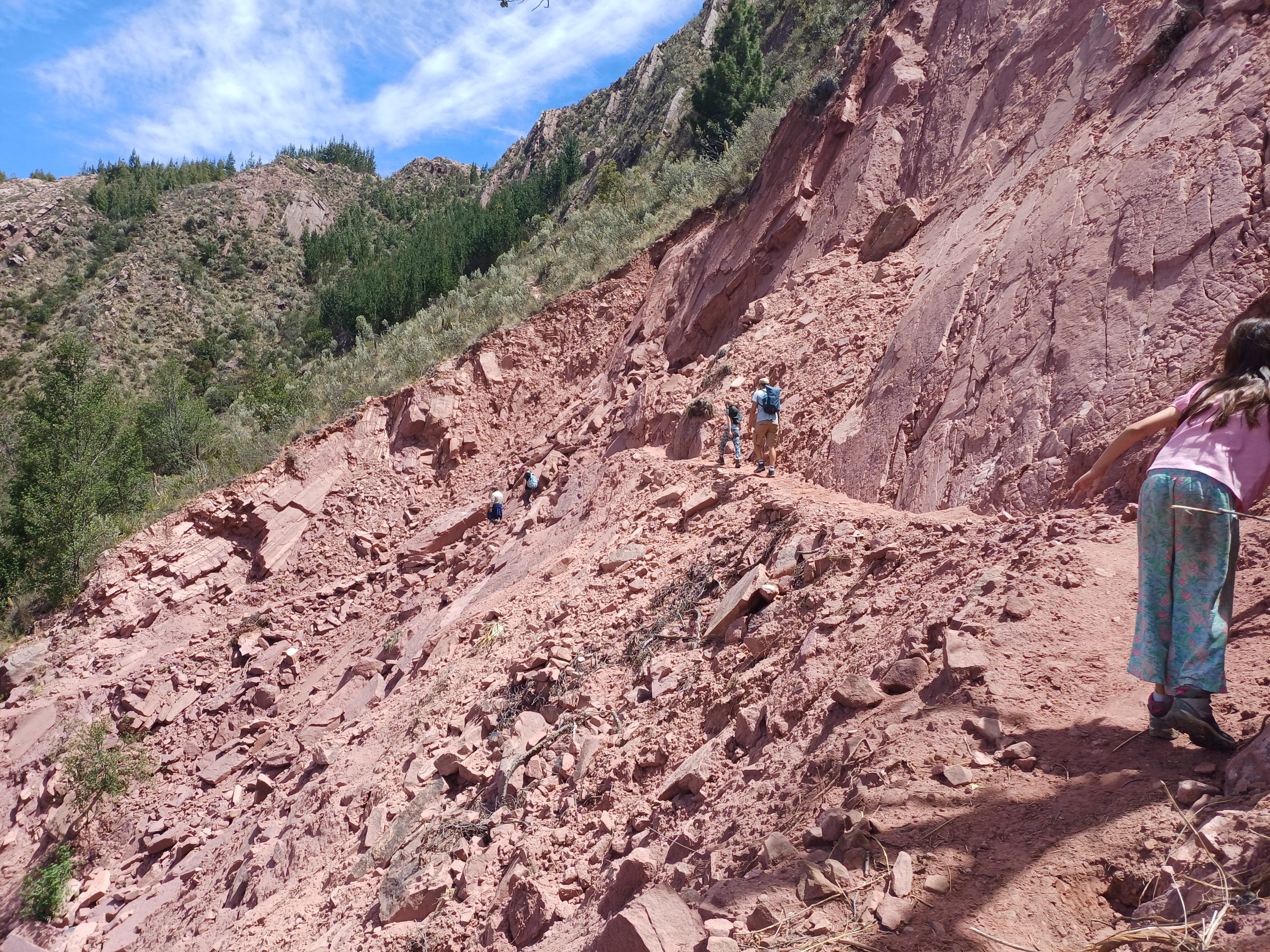 Le lendemain nous partons pour une expédition dans la Cordillera de los Frailes. Nous marchons pendant une heure sur une portion conservée du chemin des incas entre Sucre et Uyuni, à 3600 mètres d’altitude. C’est un chemin pierré au milieu de montagnes grandioses, que les incas empruntaient pour transporter le sel à dos de lamas entre Uyuni et La Paz. Les panoramas sont impressionnants, colorés, souvent à flanc de montagne avec précipices vertigineux. On en prend plein les yeux.